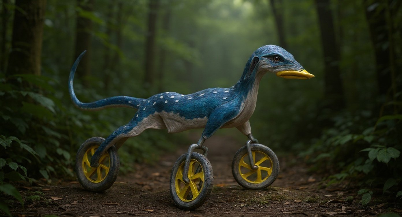 Charakteristika: Jeho přední končetiny, přeměněné v kola, jsou vyzbrojeny výsuvnými ostrými břity. Hlava je vyzbrojená silným zobákem. Dlouhý ocas používá k vyvážení rovnováhy při jízdě na zadním.