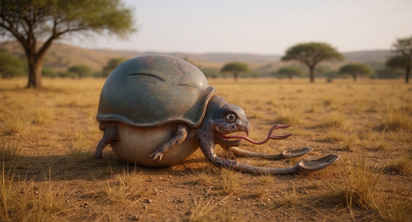 Charakteristika: Má kulovitý tvar. Železitá kůže na horním krunýři je až deset centimetrů hrubá, a proto jsou jen velmi málo pohybliví. Má však pohyblivé lopatovité kly, díky kterým se umí rozhoupat a odrazit od země, poté své lopaty sklopí za hlavu a kutálí se pláněmi, a to tak dlouho, než do něčeho narazí. Končetiny jsou krátké, zakrnělé a téměř...