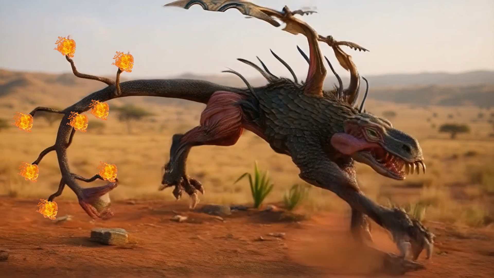 Charakteristika: Pro Ohňochvosty je typické, že mají osm ocasních výrůstků zakončených malým plamínkem. Těma při obraně před většími dravci zapalují vysoce hořlavou jedovatou kapalinu vylučující z několika zádových ostnů.
