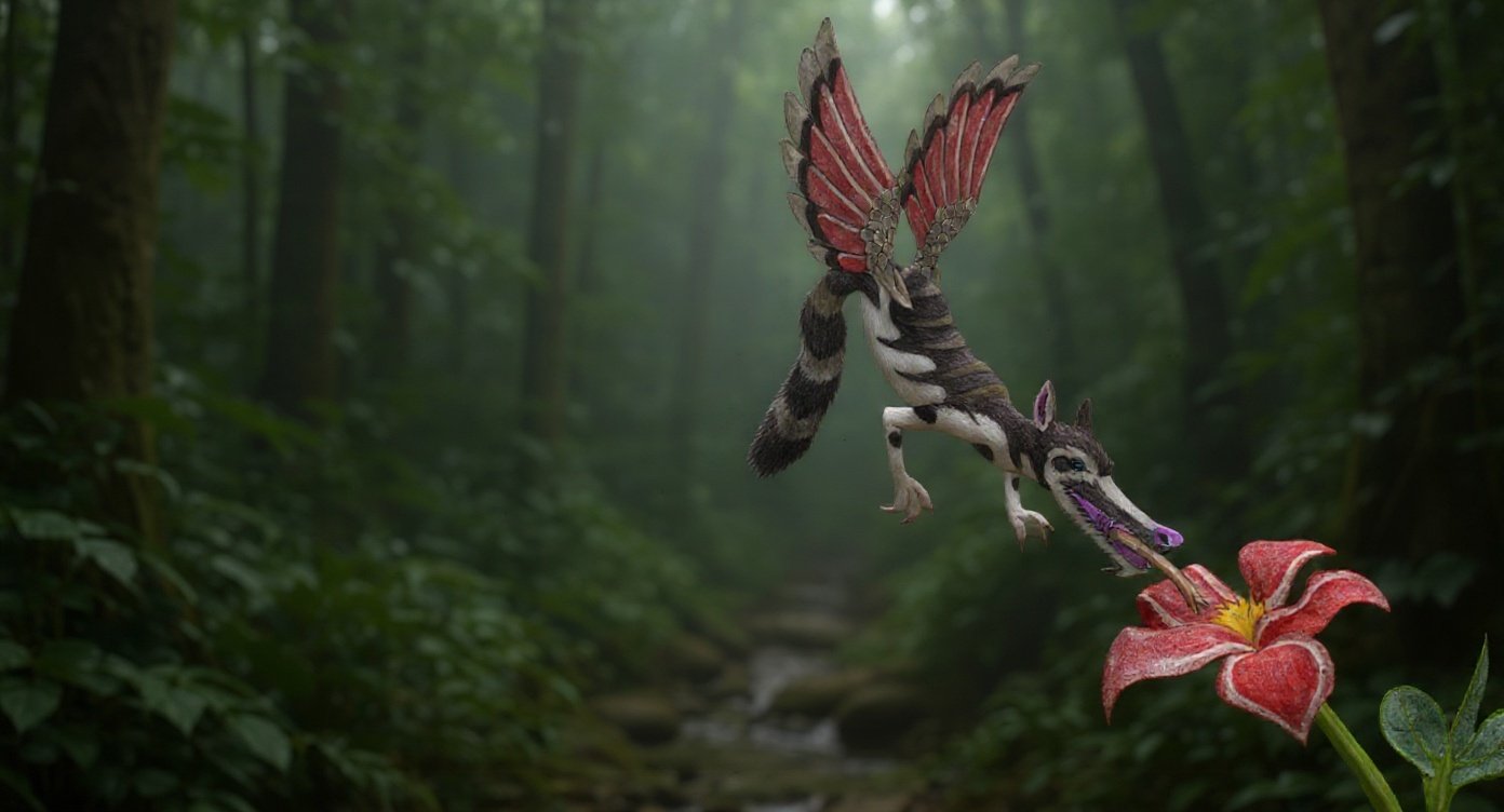 Biologie: Poletuje především v lesích, kde vyhledává kvetoucí rostliny. Živí se jejich nektarem a je hlavním opylovačem těchto rostlin. Létá hlavou dolů. Po zemi dokáže, díky svým předním končetinám, rychle běhat a dokáže i šplhat po stromech. Noc přečkává ve stromových dutinách nebo v zemních děrách.